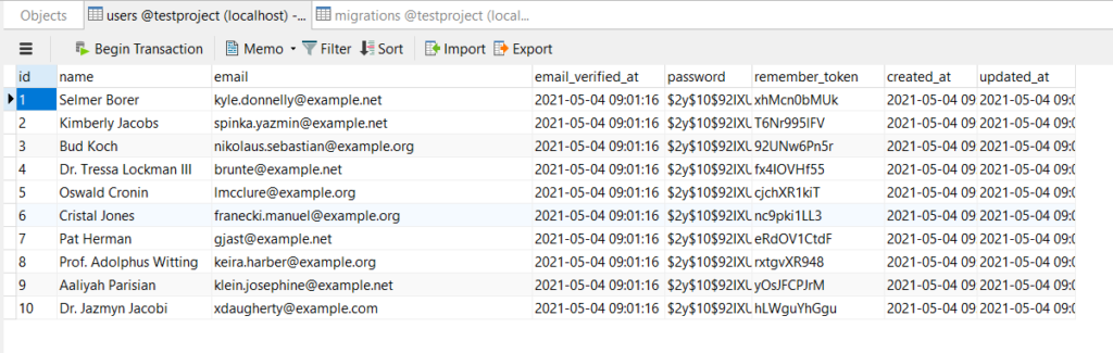 Aqui podemos ver a tabela “users” antes de fazermos seeding: